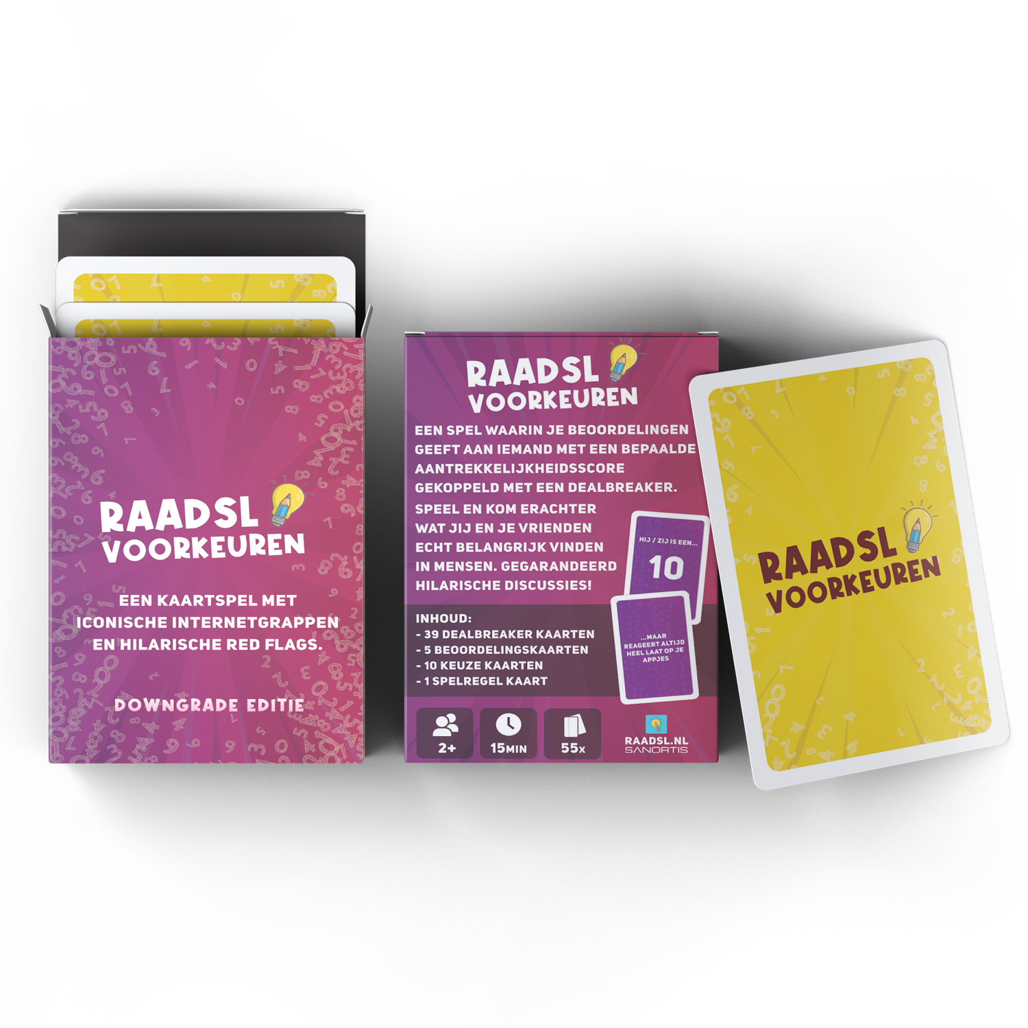Inhoud verpakking (per editie – 55 kaarten)